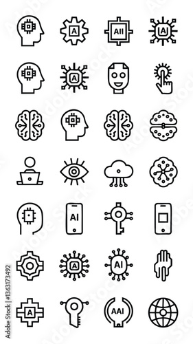 Collection of AI and Technology Line Icons