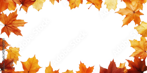 collection of autumn leaves in shades of orange and yellow. arranged in a decorative border surrounding a blank white space this design can be used for various purposes such as invitations. greeting c