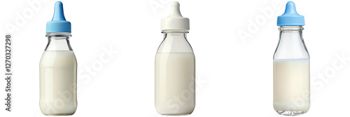 Collection of Baby Bottles with Milk in Different Styles and Designs