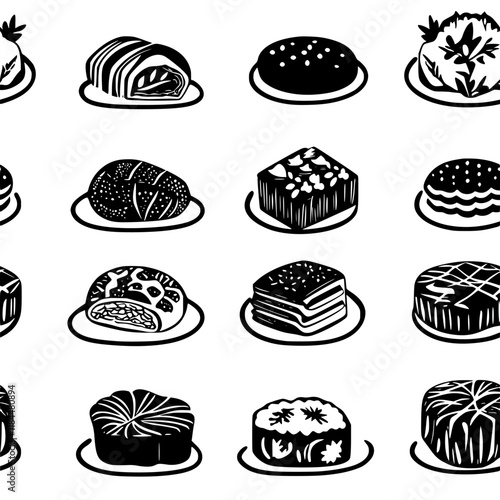 Collection of Beef Wellington continuous icon pattern, Beef Wellington vectorized artwork