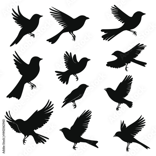 Collection of Bird Silhouettes in Various Flying and Perching Poses