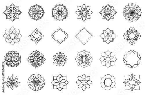 Collection of Black and White Mandala and Floral Designs Vector Graphics for Art, Craft, and Design Projects