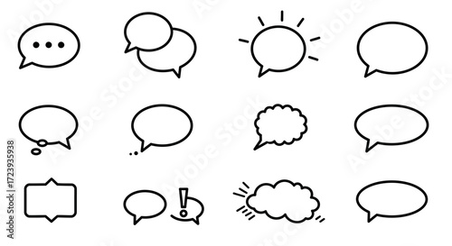 Collection of Black and White Speech Bubble Outline Icons.
