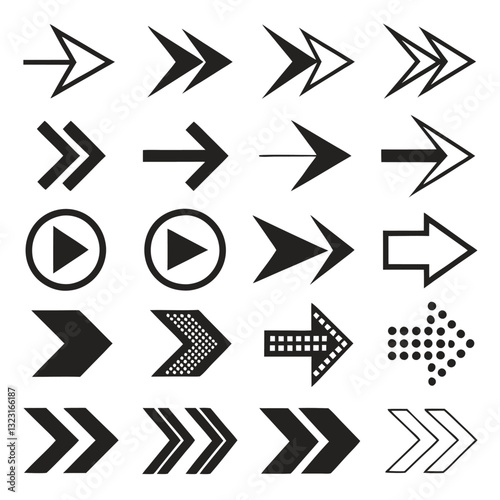 "Collection of Black Arrow Icons in Various Styles and Directions for Graphic Design"