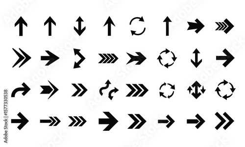 Collection of Black Arrows: Up, Down, Left, Right, Diagonal, Circular, UI, UX, Web Design Icons