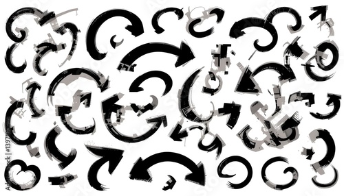 Collection of black brush stroke arrows pointing in different directions on a white background design element