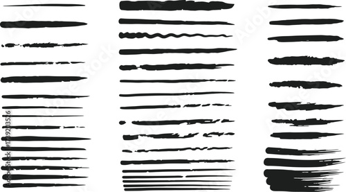 Collection of black brush strokes and lines for artistic design elements, perfect for adding a handmade touch to your creative projects.