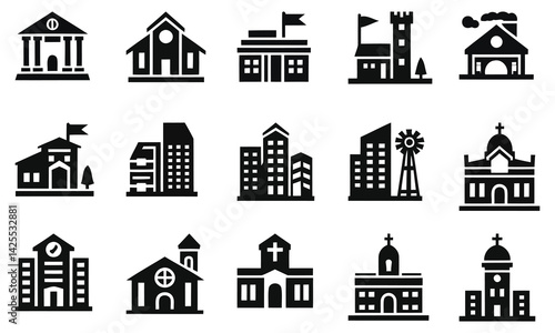 Collection of Black Building Icons Cityscape Architecture