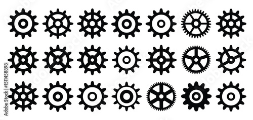 Collection of Black Gear Icons on White Background