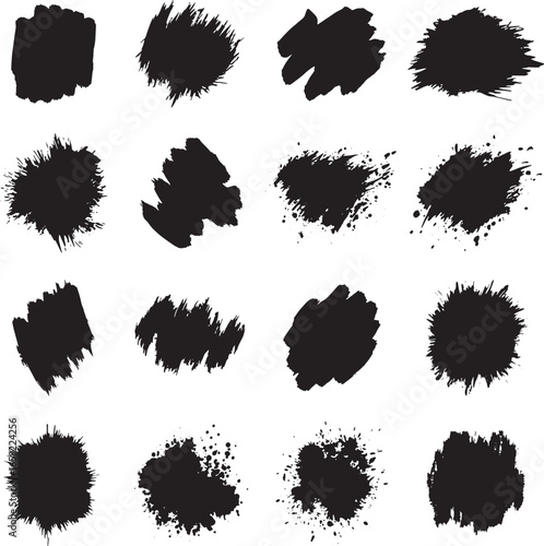 Collection of Black Ink Brush Strokes and Splatters
