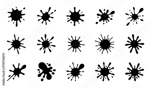 Collection of Black Ink Splatter and Blot Icons on White Background