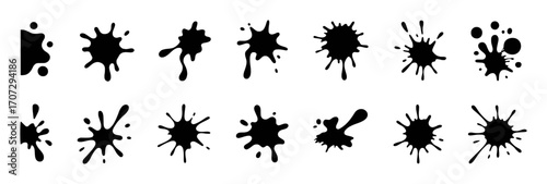 Collection of Black Ink Splatter and Blot Shapes on White Background