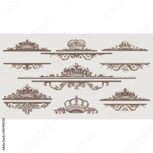 Collection of Black Minimal Ornate Design Elements with Crown Accents..
