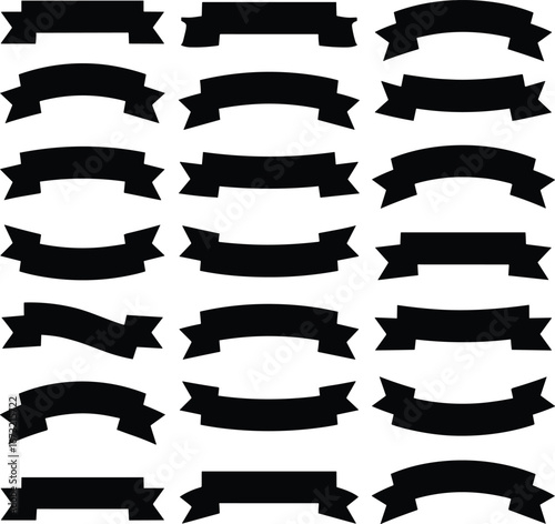 Collection of Black Ribbon Banners and Labels on White Background vector illustration