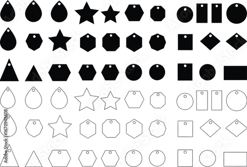 Collection of black silhouettes of various geometric shapes for jewelry making and crafting projects