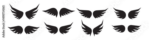 Collection of Black Stylized Wing Designs, Abstract Bird Wings