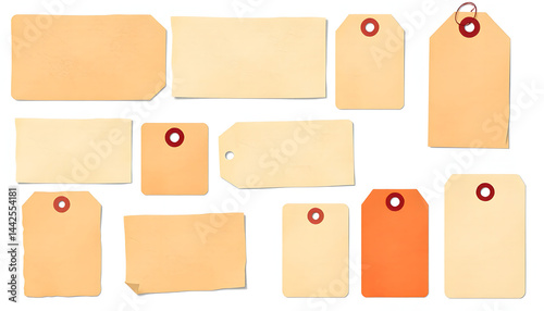 collection of blank old sticker, label, price tag template for mockup. isolated dirty, ripped, half peeled stickers, vector style. with white shades