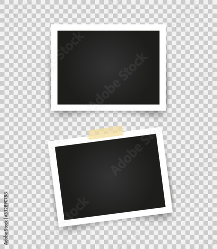 Collection of blank photo frames with adhesive tape, empty space for your photograph. Vector illustration.