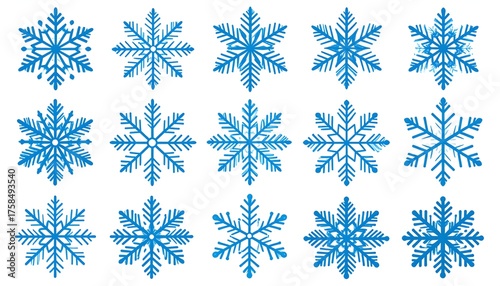 Collection of blue snowflakes on white background winter decorative elements
