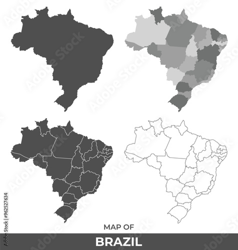 Collection of Brazil country grey political maps set with border outline vector illustration