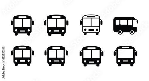 Collection of Bus Icons in Black and White for Transportation and Travel