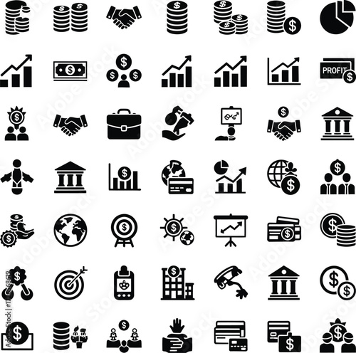 Collection of business and finance icons for presentations and infographics