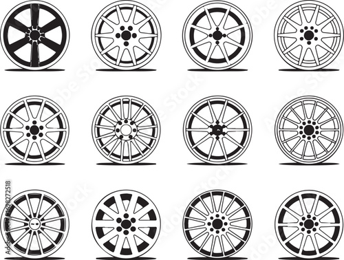 Collection of Car Wheel Rims on Transparent Background for Automotive and Transportation