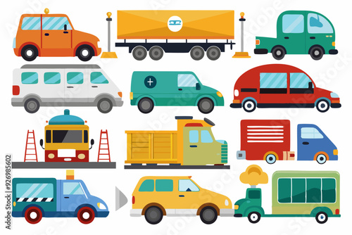 Collection of Cartoon Vehicles with Various Colors and Purposes