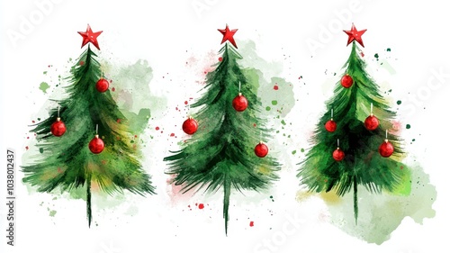 Collection of Christmas tree drawn with a brush on a white isolated background,greeting season and gift in christmas day,winter season,New Year decorations,fairy lights,copy space.