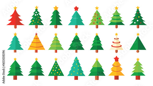 Collection of Christmas Trees in Flat Design Style for Holiday Decoration