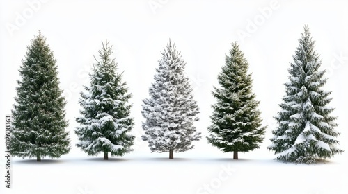 Collection of christmas Trees with Snow on white background