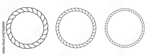 Collection of Circular Rope Frames in Line Outline Style for Design and Decorative Uses. Vector