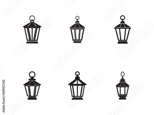 Collection of Classic Lantern Silhouettes for Holiday Decorations and Ramadan Celebrations Vector Illustration Set