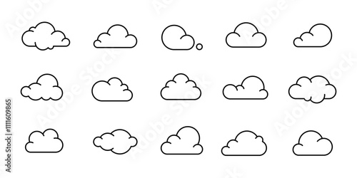 Collection of Cloud Outlines in Various Shapes with Editable Stroke