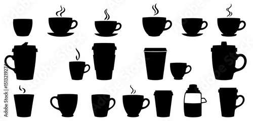 Collection of coffee cup silhouettes, various shapes and sizes, vector icons, cappuccino, vector