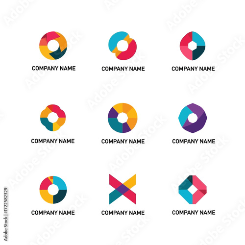 Collection of Colorful Abstract Geometric Logos and Icons for Company Branding.