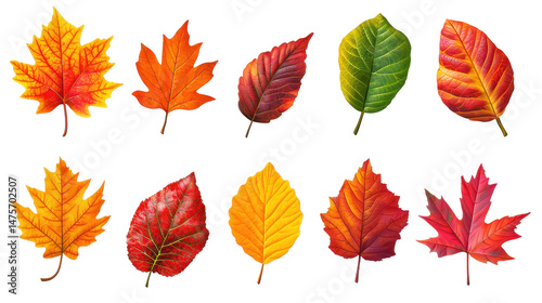 Collection of Colorful Autumn Leaves Isolated on Transparent Background