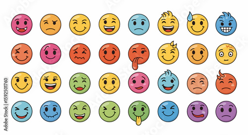 Collection of Colorful Cartoon Emoji Faces Expressing Emotions