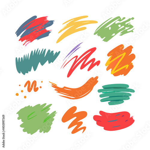 Collection Of Colorful Hand Drawn Brush Strokes And Scribbles On Black Background
