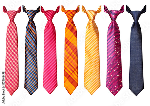 Collection of colorful neckties assorted formal fashion items on transparent background