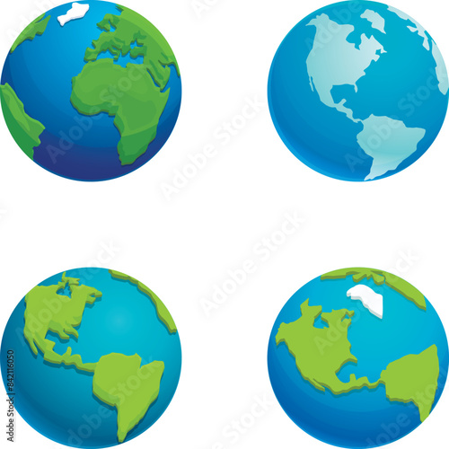 Collection of colorful vector illustrations depicting earth from various perspectives