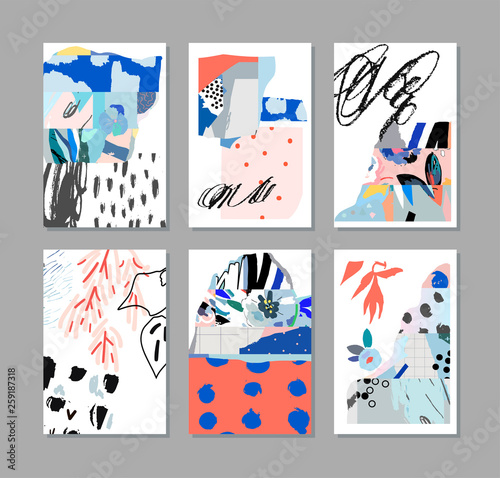 Collection of creative universal artistic cards. Hand Drawn textures. Trendy Graphic Design for banner, poster, card, cover, invitation, placard, brochure, flyer. Vector