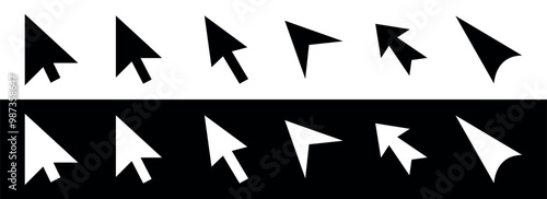Collection of Cursor in Different Designs. Vector illustration isolated on Black and White background.
