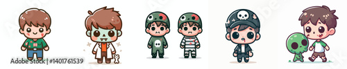 collection of cute vectors of boys wearing zombie costumes