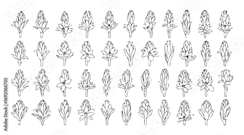 Collection of decorative flourishes and ornate botanical elements silhouette