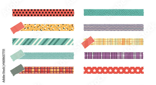 Collection of decorative washi tapes with diverse patterns and colors for crafting and journaling projects