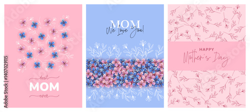 Collection of different designs with spring flowers. 8 March, womens day, mothers day holiday cards set