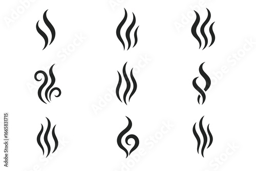 Collection of diverse black fire flame icon designs in various styles