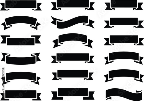 Collection of diverse black ribbon banners for design and decoration elements on white
