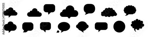 collection of diverse black speech bubble and thought bubble shapes on transparent background